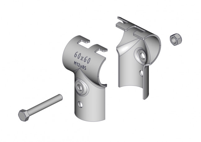 Coquille complète 60x60mm pour cornadis taureau. Coquille griffes pour serrage de deux tubes de 60mm. Utilisé sur le cornadis Taureau.