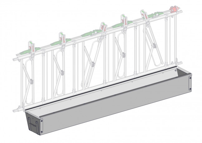 Auge en tôle galvanisée épaisseur 15/10ième se montant par boulonnage sur un cadre porte-seaux de 5 places. Auge métallique galvanisée épaisseur 15/10ième pour porte seaux 5 places. Elle est livrée en kit avec 1 fond à chaque extrémité dont un constitué d'une trappe ouvrante facilitant le nettoyage.