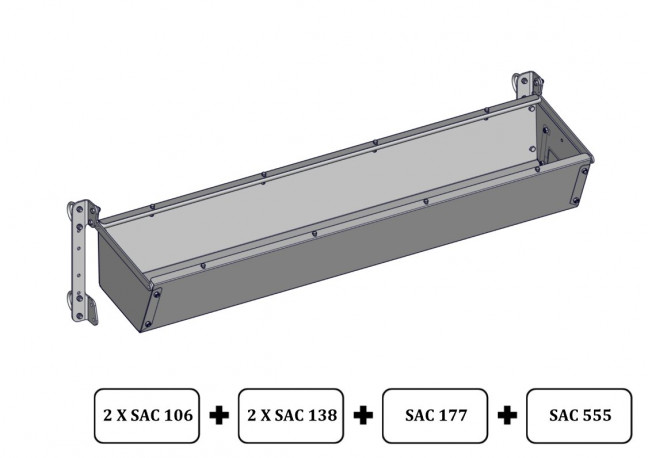Auge à veau de longueur 1,77m largeur 39cm et hauteur 26cm. Elle est composée d'un cadre en tube supportant une auge en tôle galvanisée avec une trappe de nettoyage à l'extrémité. Une paire de ferrure permet de la fixer sur une barrière EX4 ou EX5. Il y a la possibilité de rajouter 4 guides seau en option.