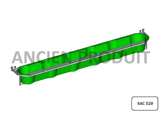 Auge verte en PEHD de 3m avec 6 empreintes pour seaux ø28.5cm , pouvant s'incliner vers l'avant pour un nettoyage simplifié. Livrée avec son cadre métallique.