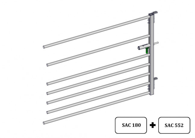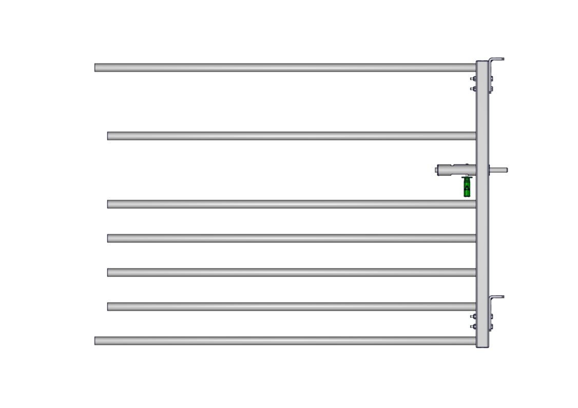 Avant de barrière 7 lisses petit bétail au détail de longueur 1,50m fabriqué en carré de 50mm avec 7 tubes horizontaux de diamètre 32mm.