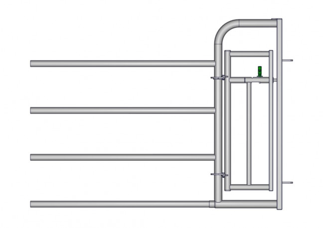 Avant passage homme DUO EX4 V2 Avant passage homme DUO EX4 version V2 permettant à l'éleveur de passer entre lots de manière rapide et sécurisée sans l'ouverture totale du panneau. Le portillon DUO obstrue le passage pour une jeune bête. Largeur de passage : 40cm