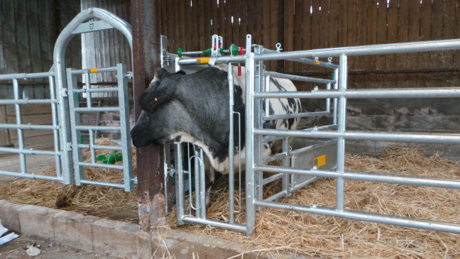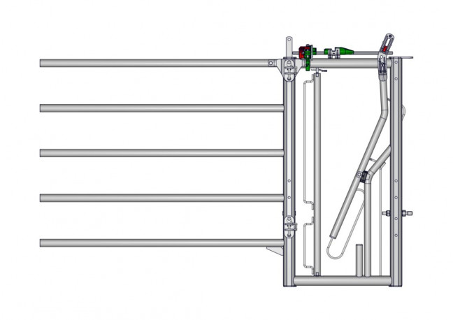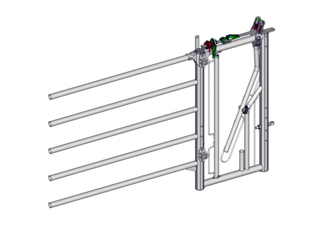 Il possède une encolure réglable aisément démontable sans outil en cas d’animal effondré. Une paire de chapes simples est fixée sur le montant et permet de supporter une porte césarienne. Il s’adapte sur les arrières EX 5. Il est livré avec un plat guide corde.