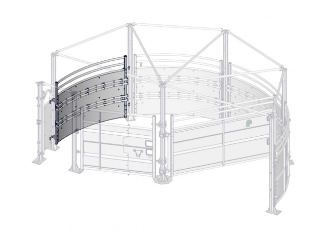 Barrière cintrée "A" au détail pour demi corral PREMIUM. Livrée en version panneau avec 4 chape et 4 tiges à œil. Elle est livrée avec cliquets anti-retour permettant de fonctionner en montage horaire ou bien anti-horaire.Livrée en version panneau, elle peut recevoir en option des verrous AUTOLOCK ou bien l'option levier double AUTOLOCK breveté.
