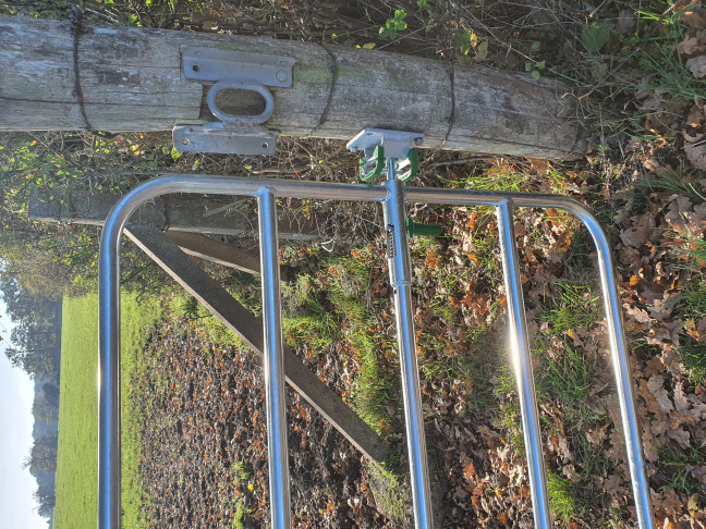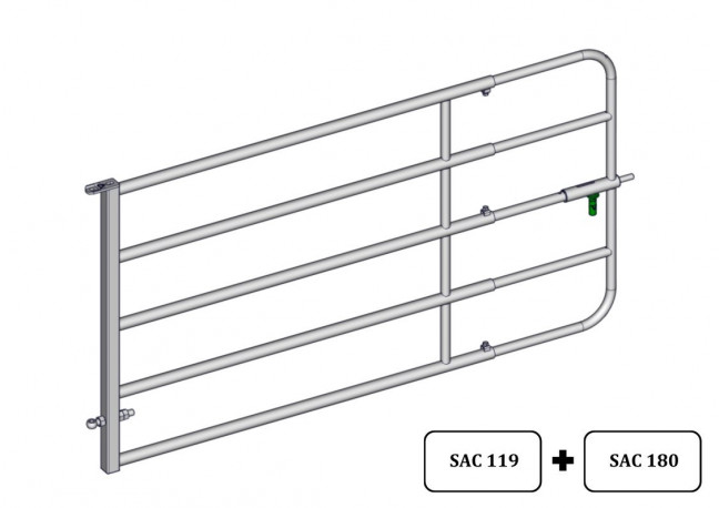 Barrière d'herbage ECO Autolock de 2/3m Barrière d'herbage ECO Autolock de 2/3m composé d'un arrière d'herbage de long 1.50m et d'un avant d'herbage ECO Autolock avec 1 seul verrou Autolock. Idéal pour un portillon de service ou bien une barrière de pré.
