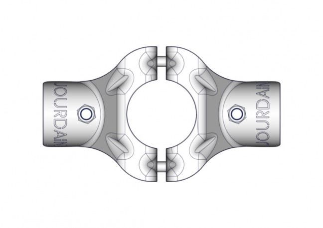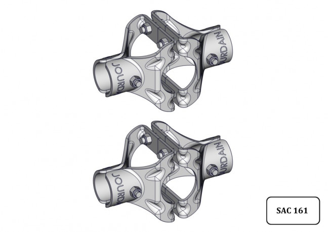Bride logette Frontal 76mm double. La paire Bride logette Frontal Double D.76mm. Composée de quatre demi-brides permettant de monter deux logettes en face à face sur un même écran frontal en tube D.76mm.