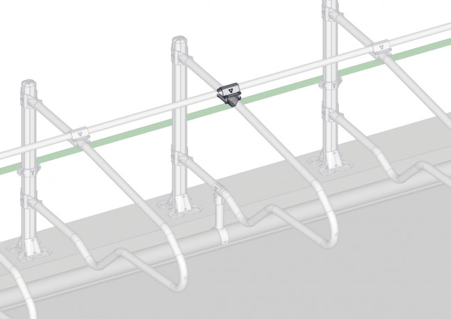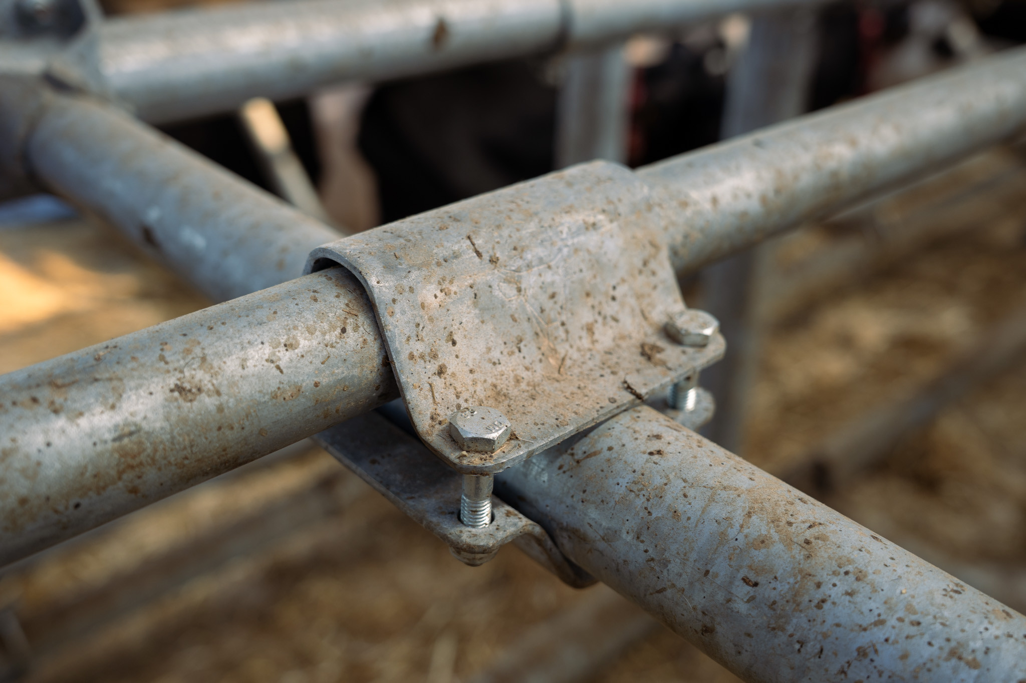 Bride Robust complète 60/49 permettant de fixer solidement en croix la barre garrot ø49mm sur le bat flanc de logette. Livré avec son sac de boulonnerie n°132.