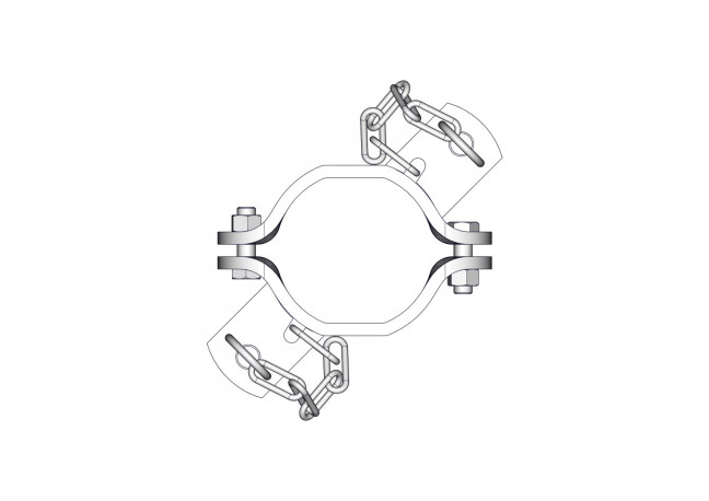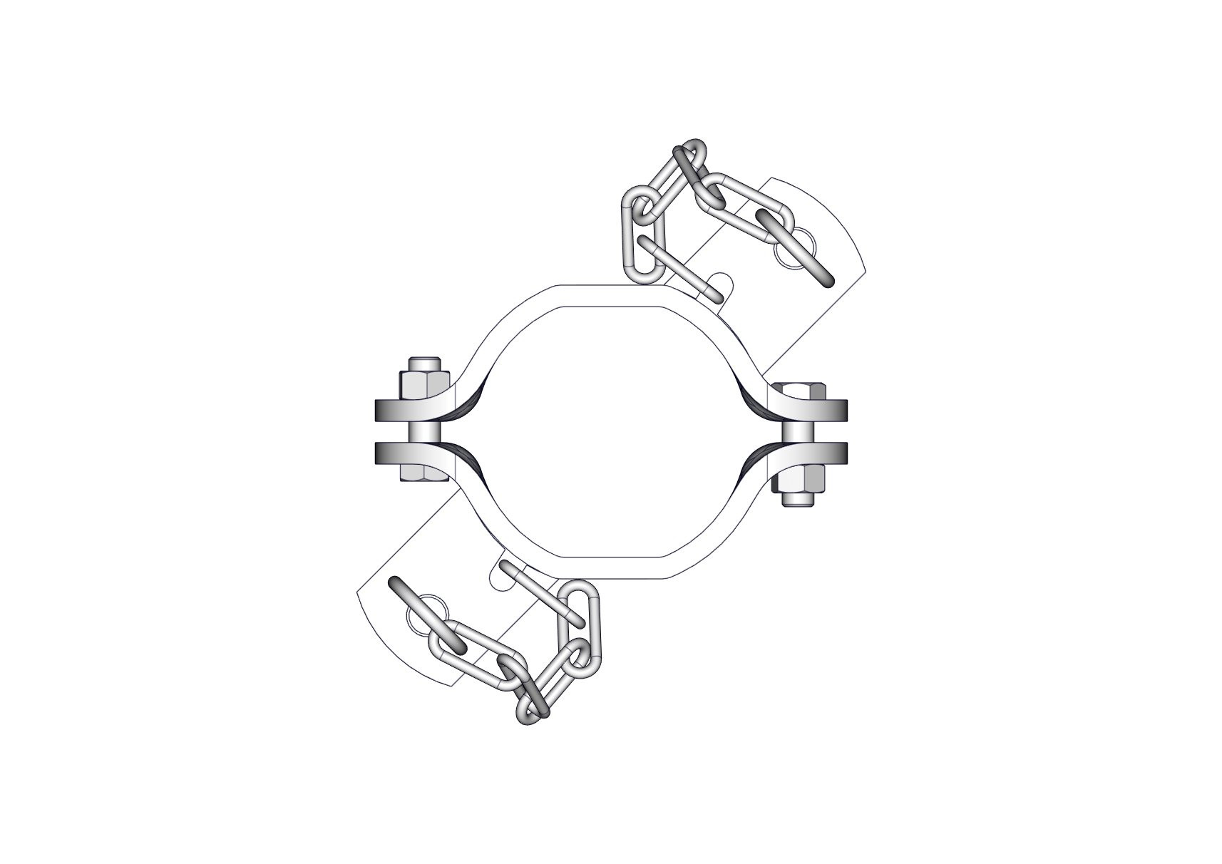 Bride TREFLE 2 directions ø102mm réalisée en plat de 60x8mm d'épaisseur. De forme octogonale elle permet l'anti rotation. Elle est composée de deux demie-bride 1D ainsi qu'un sac de boulonnerie n°122