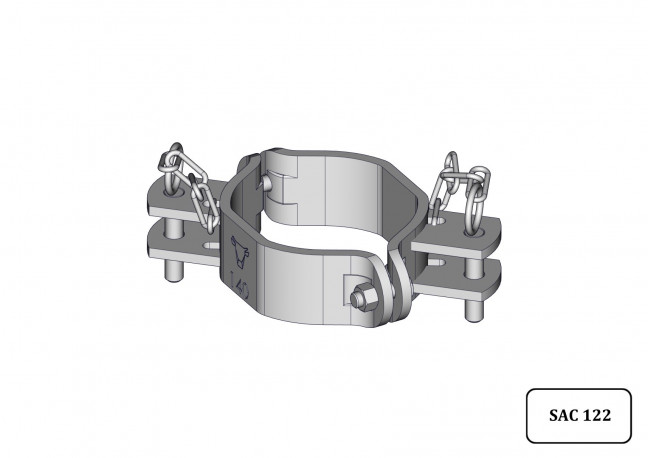 Bride TREFLE 2 directions ø140mm réalisée en plat de 60x8mm d'épaisseur. De forme octogonale elle permet l'anti rotation. Elle est composée de deux demi-bride 1D ainsi qu'un sac de boulonnerie n°122