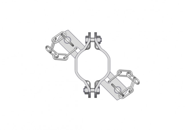Bride TREFLE 2 directions ø76mm réalisée en plat de 60x5mm d'épaisseur. De forme octogonale elle permet l'anti rotation. Elle est composée de deux demi-brides 1D ainsi qu'un sac de boulonnerie n°144