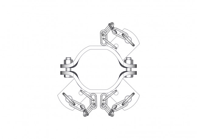 Bride TREFLE 3 directions ø102mm réalisée en plat de 60x8mm d'épaisseur. De forme octogonale elle permet l'anti rotation. Elle est composée d'une demie-bride 2D et d'une demie-bride 1D ainsi qu'un sac de boulonnerie n°122