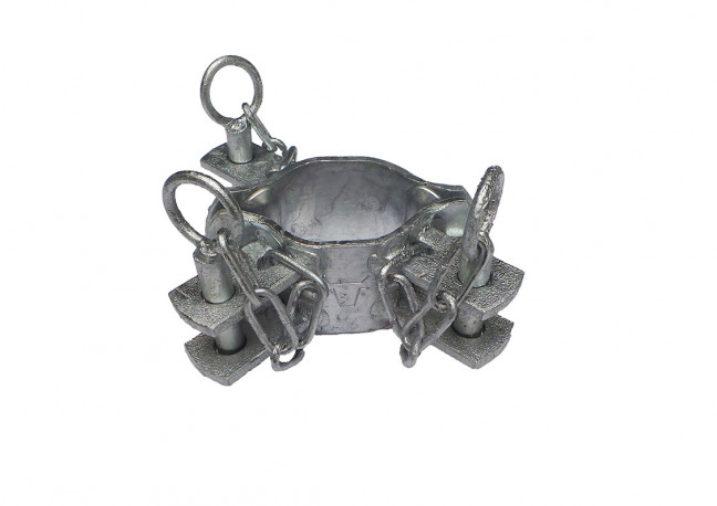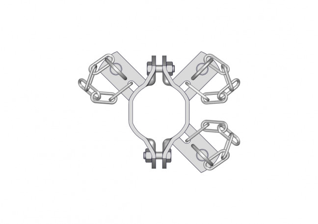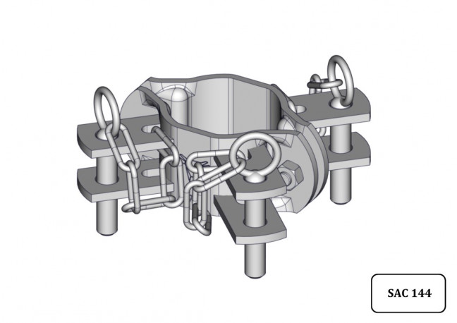 Bride TREFLE 3 directions ø76mm réalisée en plat de 60x5mm d'épaisseur. De forme octogonale elle permet l'anti rotation. Elle est composée d'une demi-brides 2D et d'une demi-bride 1D ainsi qu'un sac de boulonnerie n°144