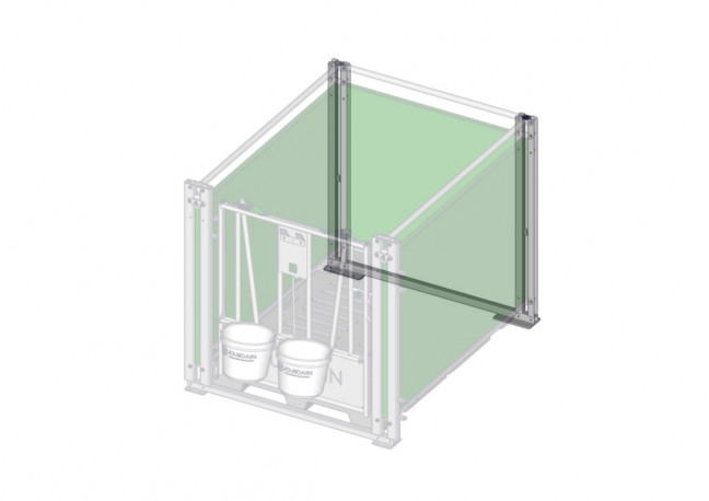 Cadre arrière pour case-mobile veau au détail, permettant de recevoir paroi verte en polypropylène étanches d'épaisseur 35mm hauteur 1m longueur 1.55m.