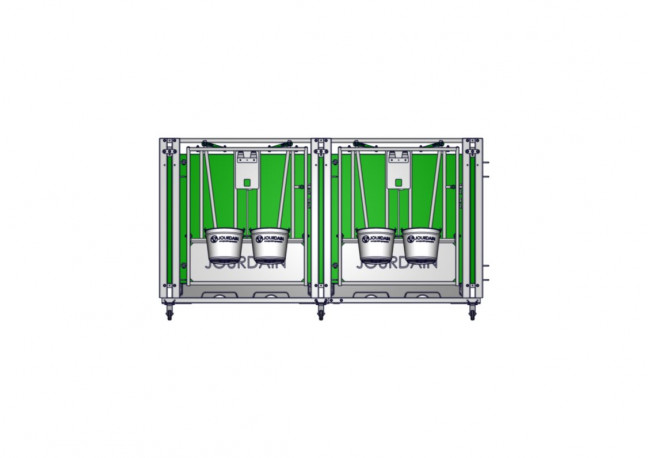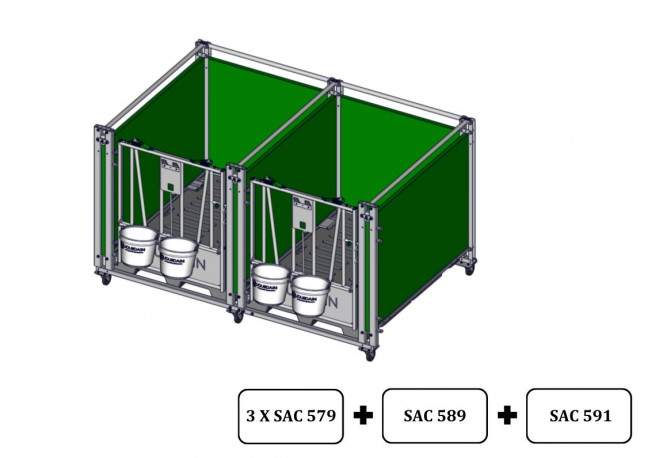 Rallonge pour case Mobile-veau constituée de 2 parois, d'une façade avec 2 cornadis manuels et d'un caillebotis autoportant et anti dérapant d'épaisseur 15cm, le caillebotis est relevable sur la paroi pour simplifier le nettoyage (breveté). Permet de rallonger une case posée au sol sans roulettes.