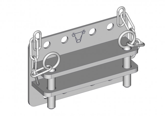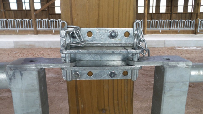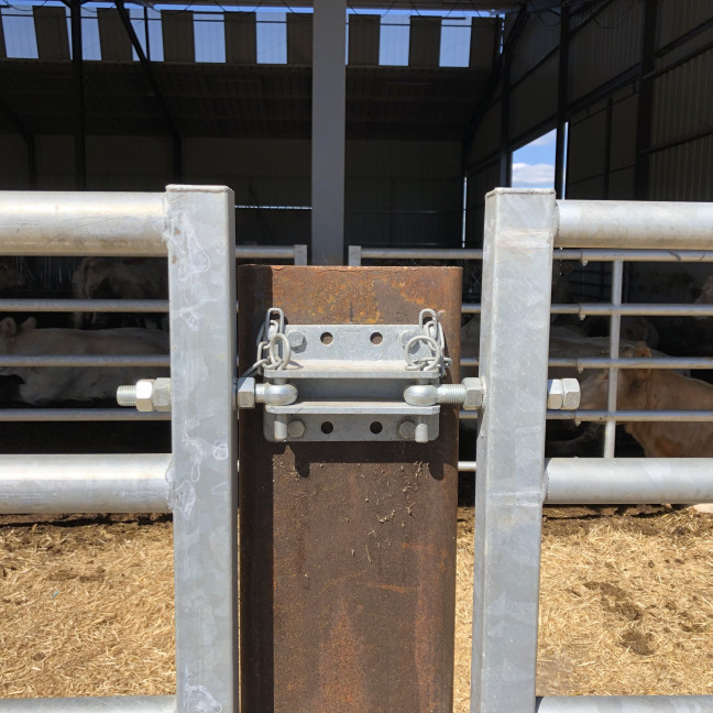 Chapes doubles permettant de fixer deux éléments (barrières, cornadis…) sur un poteau de charpente.