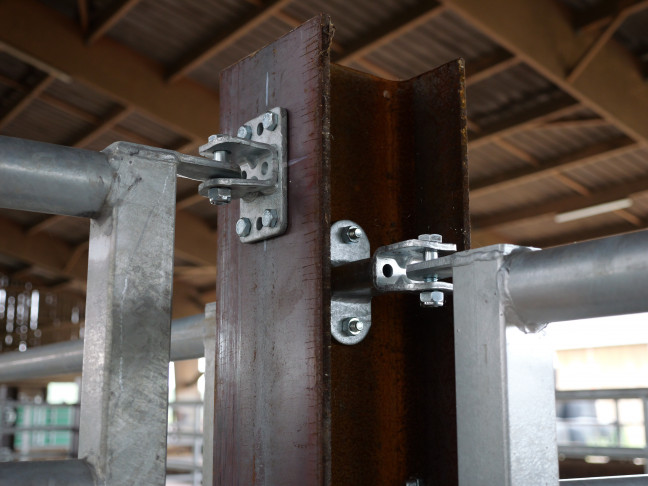 Chapes rallongée multifix se fixant à l'intérieur d'un poteau en H et permettant de monter une barrière déportée de 13cm du poteau.