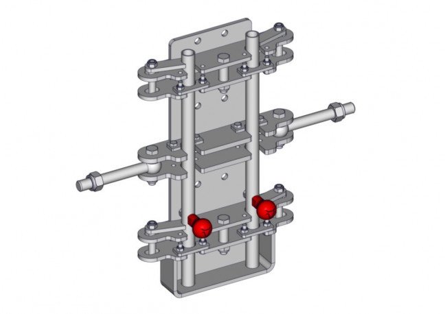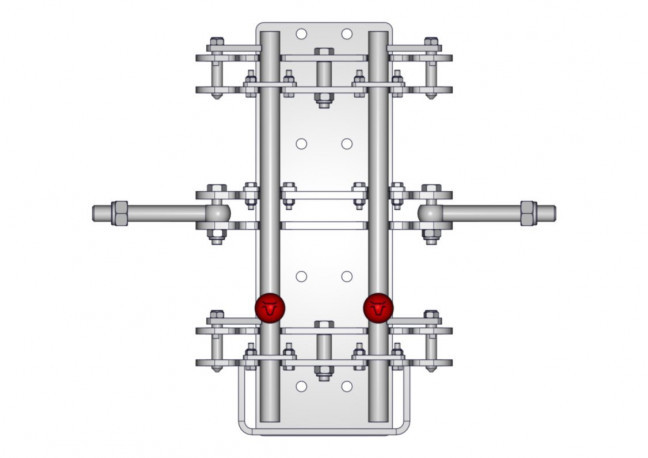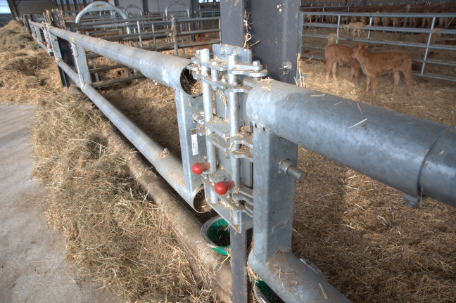 Chape montée sur un poteau HEA de 100 à 220mm permettant de rehausser rapidement, par retournement, le panneau engraissement 2 tubes et de le verrouiller en position haute en fonction de l'évolution du cheptel.