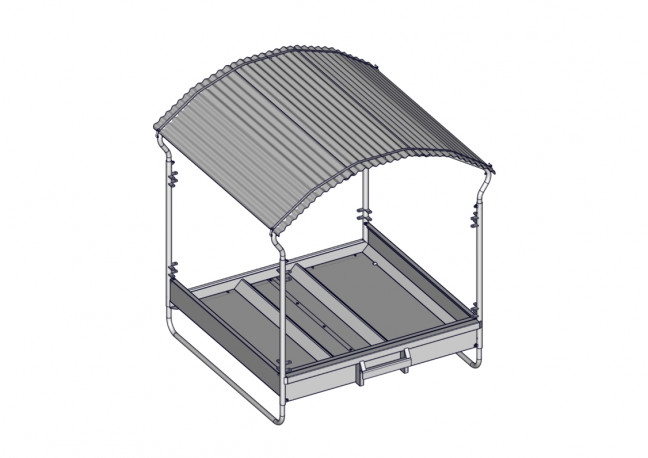 Chassis Nu pour râtelier 4 faces complet sans les 4 éléments 3 places Chassis Nu pour râtelier 4 faces 2X2 m complet avec auge et toit mais sans les 4 éléments de côté 3 places.