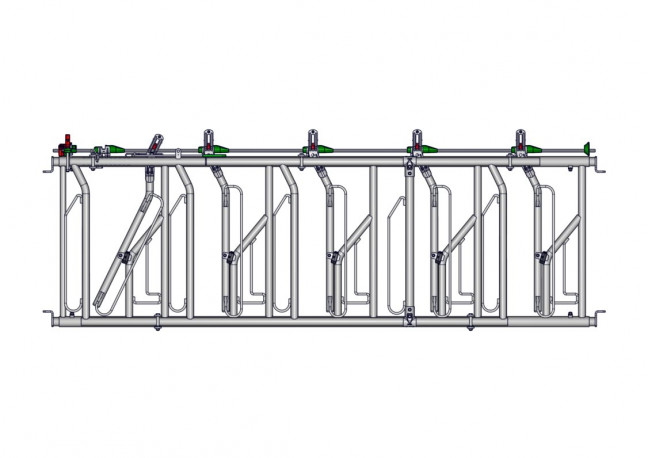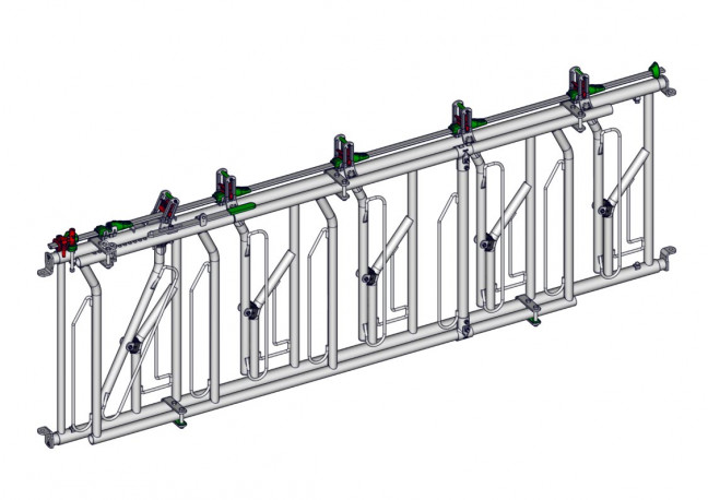 Cornadis 5 places sur 3m40 à encolure réglable avec bras mobiles cintrés