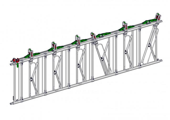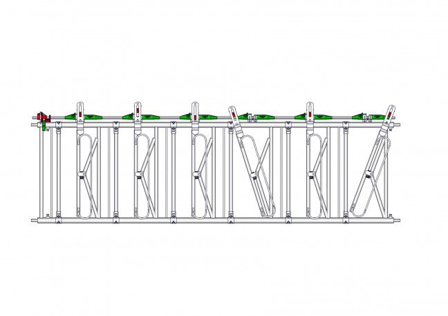 Cornadis Veau de sécurité 6 places sur 3m à encolure réglable. Il possède trois positions dont une facilitant le dégagement, par l'éleveur, d'un animal tombé.