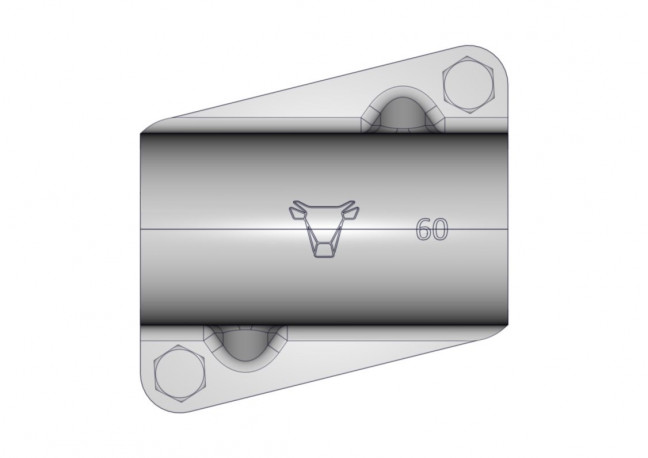 Demi bride diagonal ø60mm épaisseur 6mm. Livré avec son sac de boulonnerie n°141.