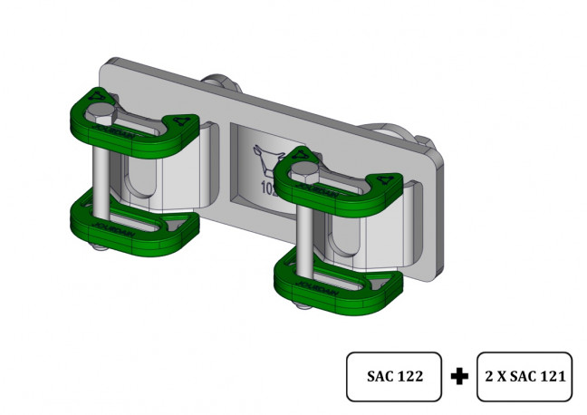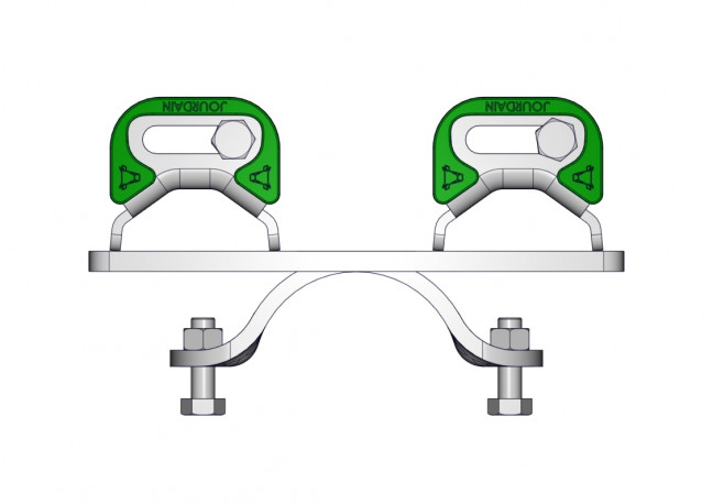 Demi bride ronde D.102 mm double SURLOCK Demi bride ronde D.102mm double Surlock pour montage sur poteau D.102mm. La bride permet de verouiller 2 barrières en façade.