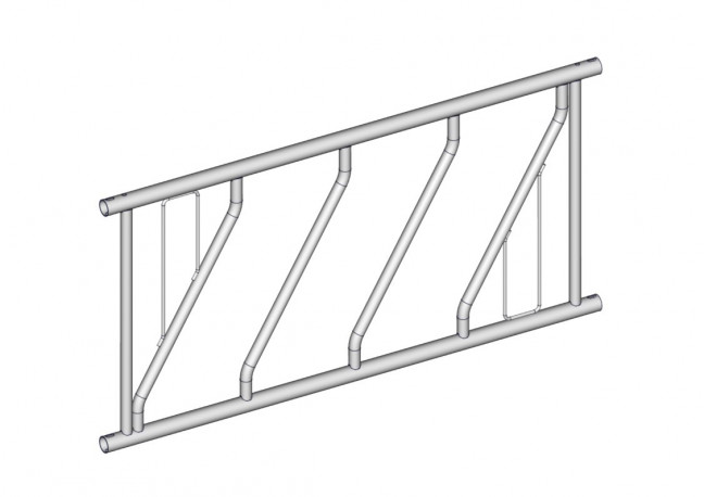 Elément de 3 places type Oblique au détail, longueur 1.95m Elément de 3 places type Oblique au détail, longueur 1.95m pour montage sur râtelier 4Faces 2X2m.