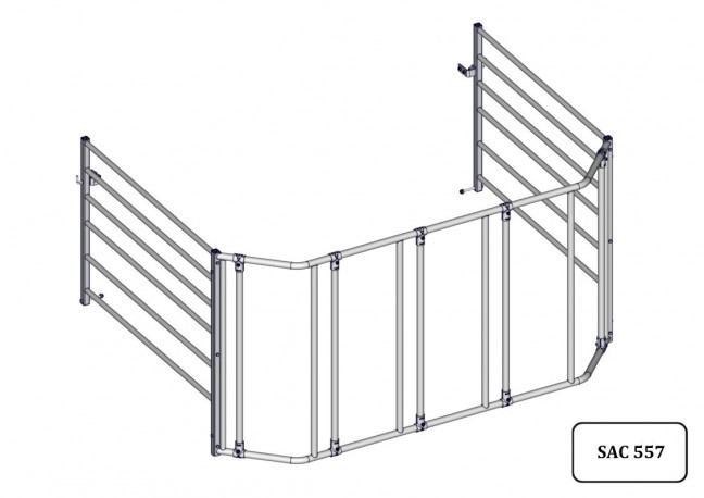 Enclos relevable de nourrisseur au détail pour montage sur un nourrisseur de longueur 2.50m. Composé d'une façade avec 4 passages et de 2 côtés d'enclos avec les accessoires de montage.