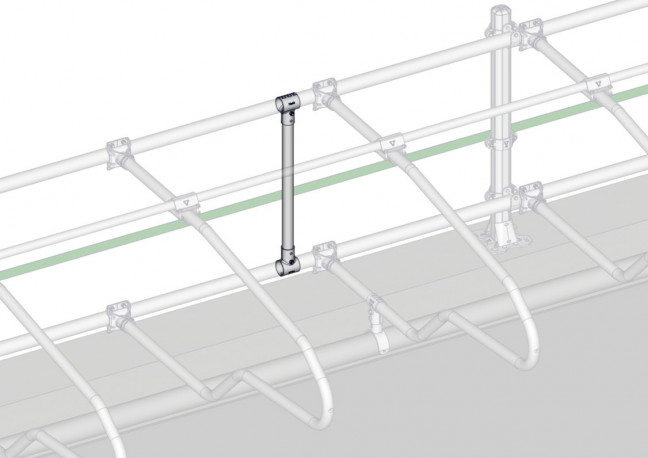 Entretoise pour écran frontal D.76mm dimension pour logette TEXANE 950mm. Entretoise raidisseur pour écran frontal D.76mm dimension pour logette TEXANE 950mm. Composé d'un tube D.60mm avec 2 coquilles 76/60mm. Conseillé pour raidir l'écran frontal.