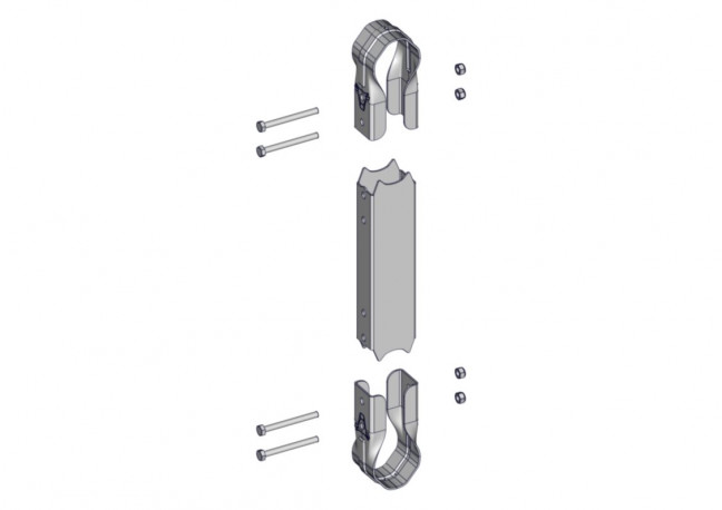 Entretoise engraissement 2 tubes en rectangle 100x60mm livrée avec ses 2 brides et sa boulonnerie. Prévoir une entretoise pour les panneaux de 5m et 6m.