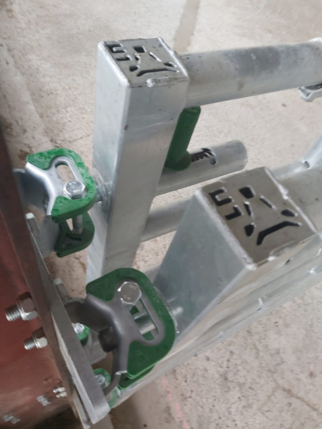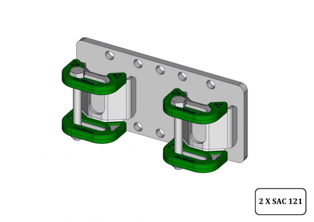 Ferrure double Surlock pour montage mural Ferrure double Surlock pour montage mural ou bien sur les poteaux du bâtiment type H ou I. La ferrure permet de verouiller 2 barrières en façade.