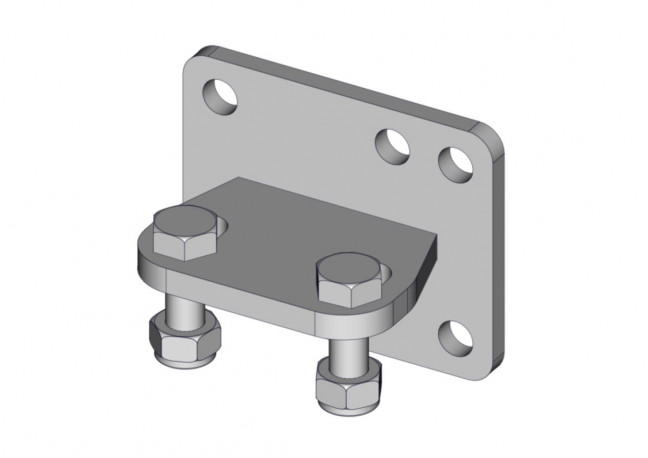 Ferrure support cornadis Ferrure fixation haute cornadis, livrée avec 2 boulons de 14mm. A fixer sur le poteau du bâtiment type H et I et permettant de fixer l'embout haut des cornadis SAFETY ou AXIAL en position incliné pour le raccordement des tringles.