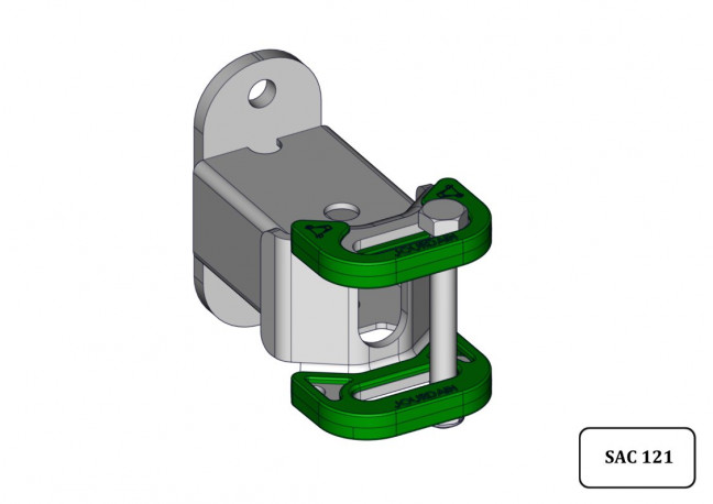 Ferrures SURLOCK rallongée se fixant à l'intérieur d'un poteau en H et permettant de bloquer une porte Autolock déportée de 13cm du poteau.