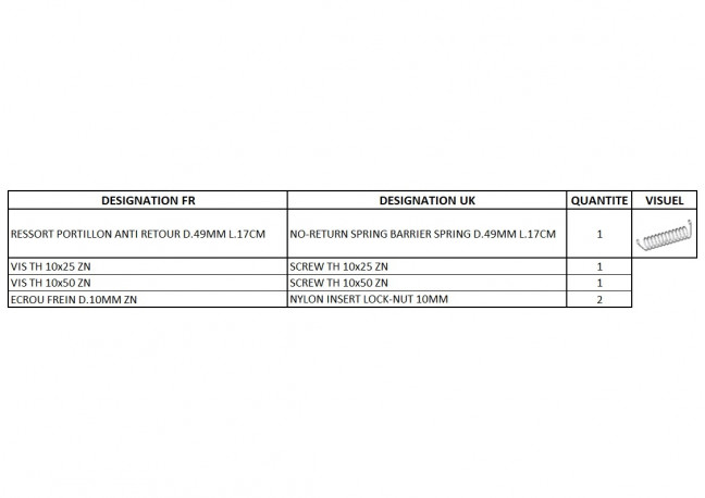 KIT REMPLACEMENT RESSORT PORTILLON ANTI RETOUR