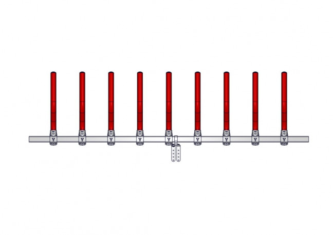 Libre Service Confort Plus Laitier Rouge de 10 places sur 4m sans embout de fixation constitué de 9 tubes en PEHD Vert de 76mm, de 9 brides Carrées D.80mm/76mm, d'un renfort muret confort plus et d'un tube Carré D.80mm longueur 6m à recouper sur place. Le libre service pour bovin laitier est confortable et réglable en largeur. Pensez à commander les chapes de montage murale ou bien les brides D.102mm pour montage entre potelet D.102mm.