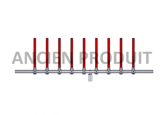 Libre Service Confort Plus Laitier Rouge de 10 places sur 4m sans embout de fixation constitué de 9 tubes en PEHD Vert de 76mm, de 9 brides Trèfle D.102mm/76mm, d'un renfort muret confort plus et d'un tube Trèfle D.102mm longueur 4,45m à recouper sur place. Le libre service pour bovin laitier est confortable et réglable en largeur. Pensez à commander les chapes de montage murale ou bien les brides D.102mm pour montage entre potelet D.102mm.