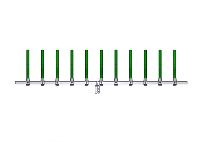 Libre Service Confort Plus Laitier Vert de 12 places sur 5m sans embout de fixation constitué de 11 tubes en PEHD Vert de 76mm, de 11 brides Carrées D.80mm/76mm, d'un renfort muret confort plus et d'un tube Carré D.80mm longueur 6m à recouper sur place. Le libre service pour bovin laitier est confortable et réglable en largeur. Pensez à commander les chapes de montage murale ou bien les brides D.102mm pour montage entre potelet D.102mm.