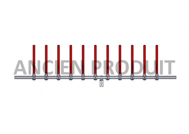 Libre Service Confort Plus Laitier Rouge de 12 places sur 5m sans embout de fixation constitué de 11 tubes en PEHD Vert de 76mm, de 11 brides Trèfle D.102mm/76mm, d'un renfort muret confort plus et d'un tube Trèfle D.102mm longueur 5,45m à recouper sur place. Le libre service pour bovin laitier est confortable et réglable en largeur. Pensez à commander les chapes de montage murale ou bien les brides D.102mm pour montage entre potelet D.102mm.