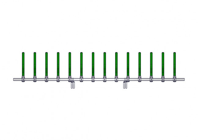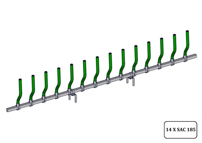 Libre Service Confort Plus Laitier Vert de 15 places sur 6m sans embout de fixation constitué de 14 tubes en PEHD Vert de 76mm, de 14 brides Carrées D.80mm/76mm, d'un renfort muret confort plus et d'un tube Carré D.80mm longueur 6m à recouper sur place. Le libre service pour bovin laitier est confortable et réglable en largeur. Pensez à commander les chapes de montage murale ou bien les brides D.102mm pour montage entre potelet D.102mm.