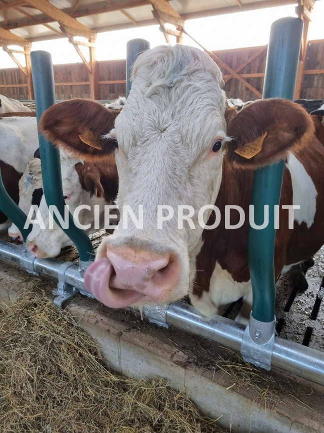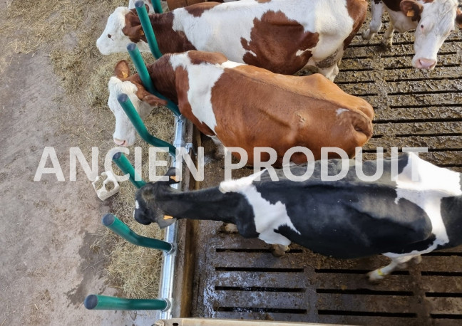 Libre Service Confort Plus Laitier Vert de 15 places sur 6m sans embout de fixation constitué de 14 tubes en PEHD Vert de 76mm, de 14 brides Trèfle D.102mm/76mm, de deux renforts muret confort plus et d'un tube Trèfle D.102mm longueur 6m à recouper sur place. Le libre service pour bovin laitier est confortable et réglable en largeur. Pensez à commander les chapes de montage murale ou bien les brides D.102mm pour montage entre potelet D.102mm.