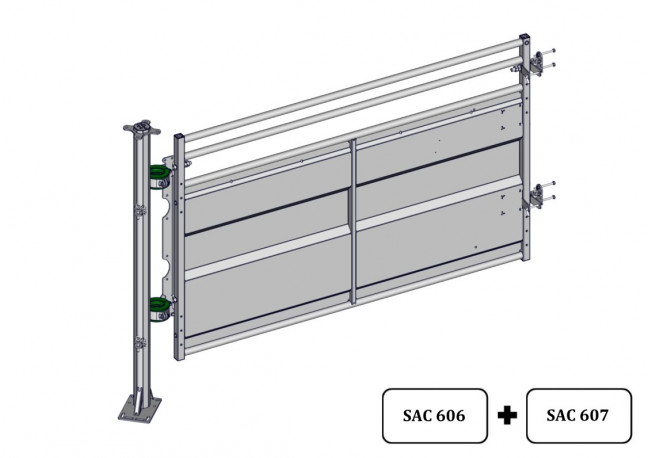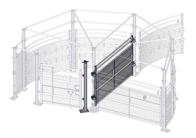 Seconde Barrière rotative pour montage sur le poteau de rotation du demi-corral PREMIUM. Elle permet de se fixer sur un poteau du demi corral et de s'arrêter pour faire sortir les animaux ou bien rentrer en ouvrant la barrière cintrée de la portion 3 ou bien 4. Elle est livrée avec le kit de rotation. Cette seconde barrière ne peut pas se monter sur un couloir de poussé.