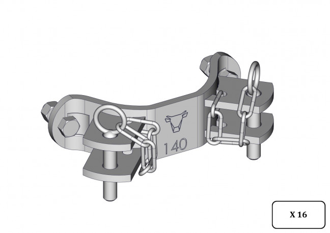 Demi Bride TREFLE 2 directions ø140mm réalisée en plat de 60x8mm d'épaisseur. De forme octogonale elle permet l'anti rotation, livrée avec un sac de boulonnerie n°122