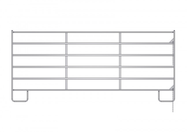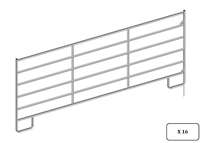 Panel de contention léger : hauteur 1.57m, longueur 3.60m, permettant de réaliser rapidement des parcs de contention. Assemblage par chainettes et produit fabriqué en tubes ovales.