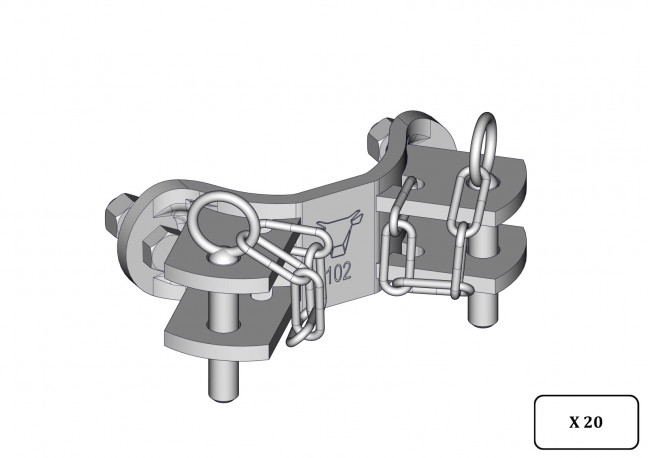 Demi Bride TREFLE 2 directions ø102mm réalisée en plat de 60x8mm d'épaisseur. De forme octogonale elle permet l'anti rotation, livrée avec un sac de boulonnerie n°122
