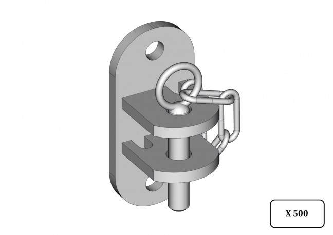 Chapes simples permettant de fixer un élément (barrière, cornadis…). Livrée avec une chainette et une goupille par chape.