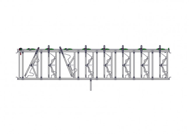 Cornadis de sécurité 8 places sur 5.40m à encolure réglable. Cornadis avec axes coulissants en acier revêtus de polyamide choc , bras mobile renforcé par bague anti-usure , anti-passage de tête haut et bas et retour du collier grâce au système RAZ (remise à zéro). Fourni avec 4 embouts de réglage