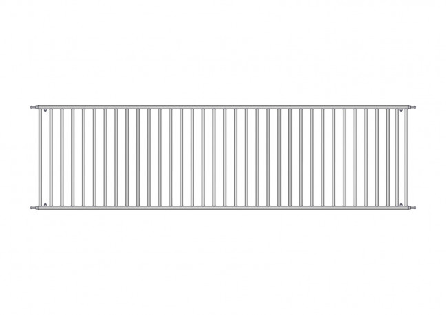 Pack de 6 séparations à barreaudage vertical pour chèvre de 4 m Pack de 6 séparations pour chèvre de 4 m à barreaudage vertical, hauteur 1.08m, réalisée en tube horizontal de 42mm avec un barreaudage vertical en tube ø34mm grugés pour une soudure des 2 côtés. Construction robuste permettant de créer des boxes pour chèvre.