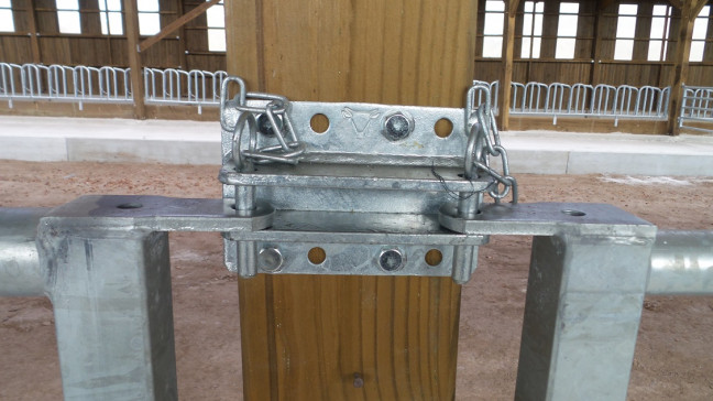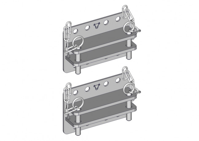 Paire de chapes doubles permettant de fixer deux éléments (barrières, cornadis…) sur un poteau de charpente.