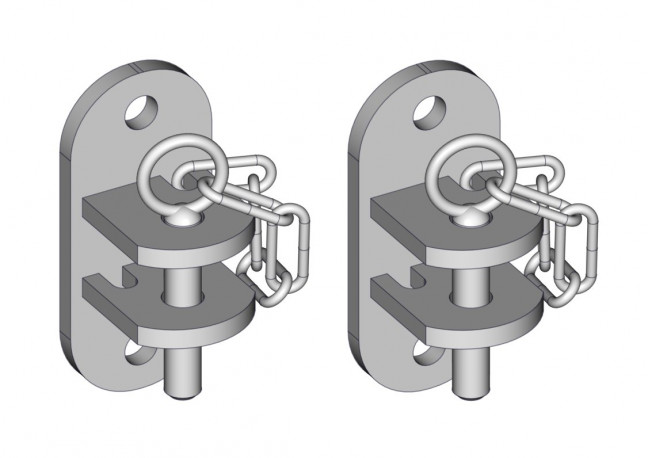 Paire de chapes simples permettant de fixer un élément (barrière, cornadis…). Livrée avec une chainette et une goupille par chape.
