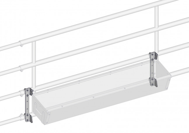 Ferrure d'adaptation permettant de fixer un porte seaux adaptable avec son auge sur une barrière EX. Vendu par paire.